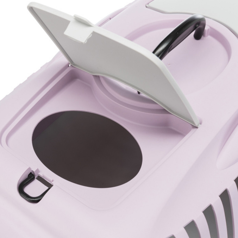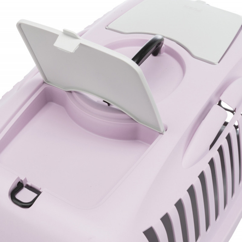 Com pega para facilitar o transporte. Laterais ventiladas e local onde prender o cinto de segurança. O modelo Capri 2 tem um local para armazenar o boletim, uma trela, etc.
